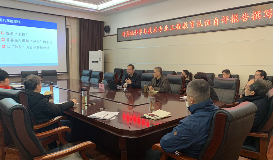 为顺利完成计算机科学技术专业认证自评报告撰写工作,12月26日下午,我院在217会议室召开了自评报告撰写工作推进会。此次会议特邀请河南工业大学信息科学与工程学院院长邓淼磊教授。会议由院长孙君顶主持,学院工程教育专业认证工作小组成员参加了此次会议。