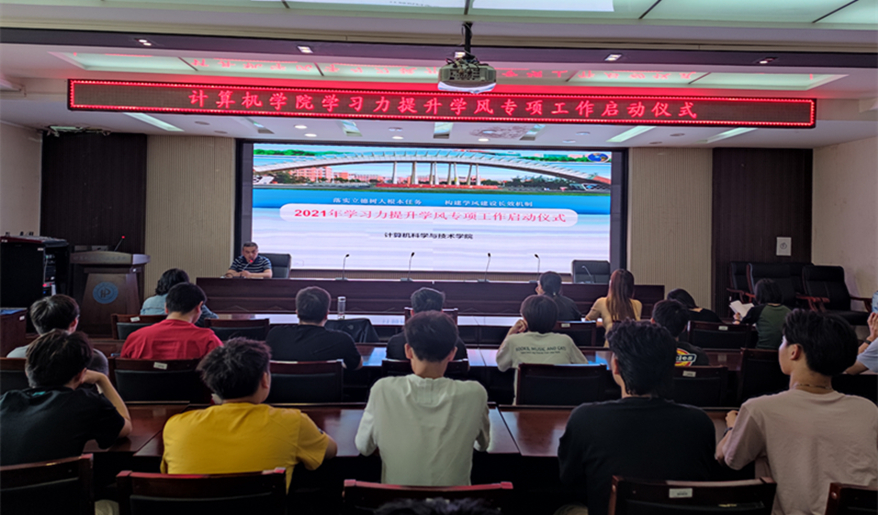 会议伊始,辅导员段云霄宣读《计算机科学与技术学院学习力提升学风专项工作方案》,辅导员杨莉宣读《计算机学院不良学风专项治理方案》。邵水军对学院过去一年的学风建设工作做了总结,并对与会学生提出三点要求:一要认清学院的学风建设状况,意识到学风建设工作的迫切性;二要正确认识学风建设的意义,用心用情做好班级特色学风建设;三要成为推进学风建设的骨干力量,推动构建学风建设长效机制,营造良好的学习氛围。最后,2017级考研明星宿舍六位同学向大家分享了自己的考研经验。