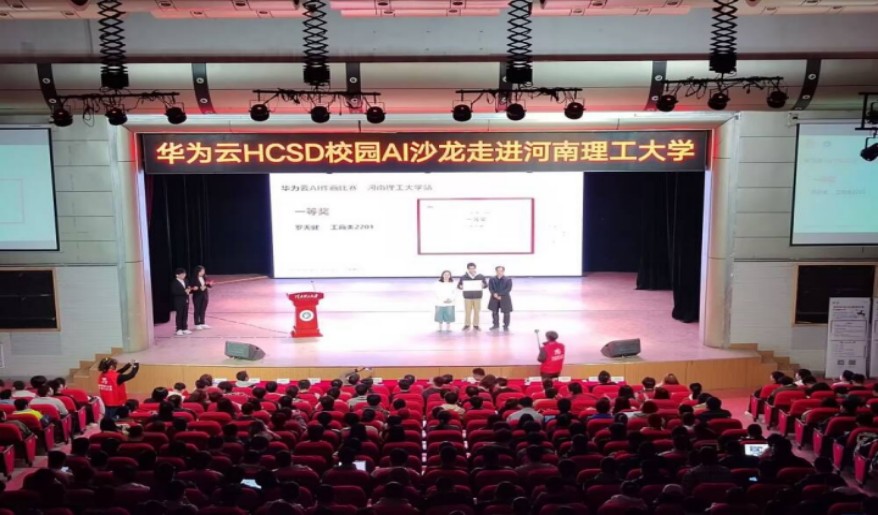 3月25日,由华为云计算有限公司主办,中原鲲鹏生态创新中心、中原人工智能计算中心联合承办,河南理工大学协办的“华为云HCSD校园沙龙”走进河南理工大学。我院副院长王磊、华为技术有限公司华为云河南副总经理刘俊辉分别致辞。我校900余名AI爱好者参与活动现场。