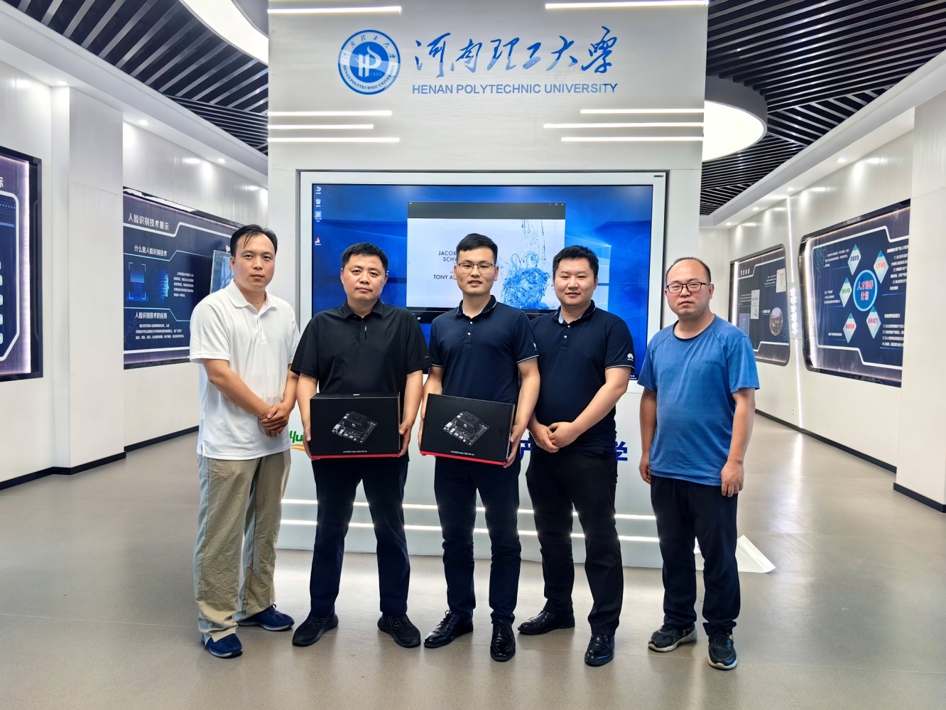 中原人工智能计算中心由许昌市政府与华为公司共同建设,致力于推动人工智能产业在河南省的推广和行业应用。计算中心教育生态负责人孙星星和技术专家刘贤阁在计算机学院2楼鲲鹏展厅,向学院赠送两套华为新开发的昇腾新一代Atlas 200I DK A2开发者套件,支持学院进行人工智能人才培养和学科竞赛。