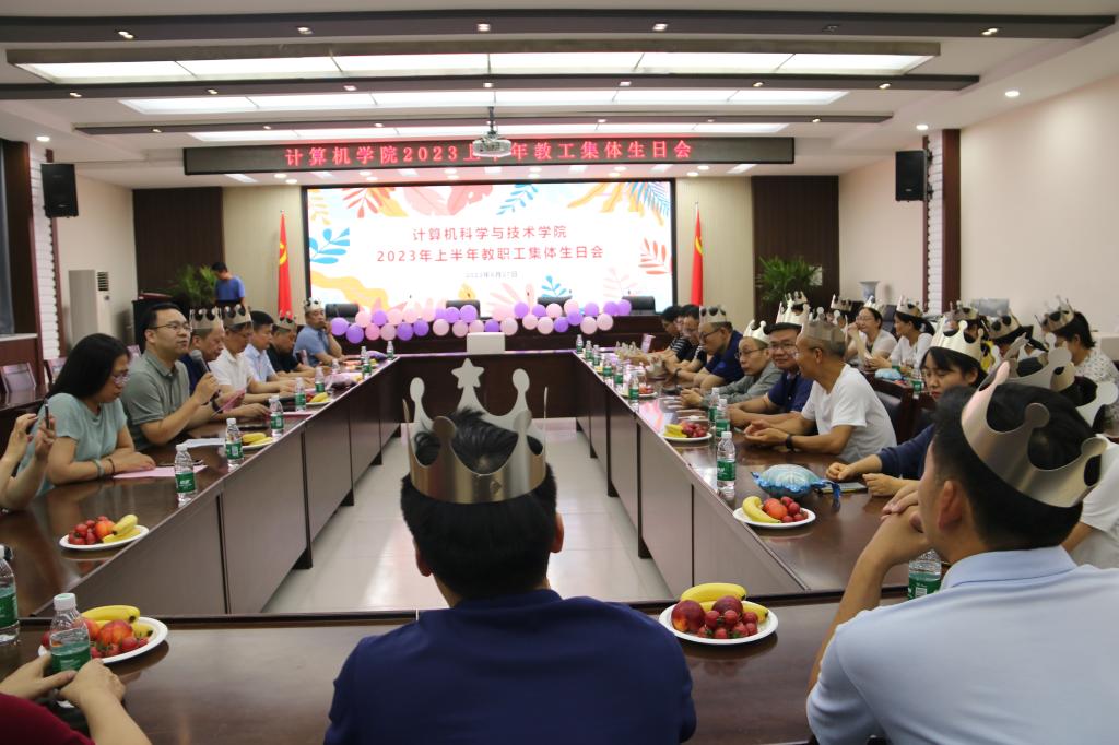 为增强教职工归属感,提升学院凝聚力,让教职工切实感受到计算机学院大家庭的温暖,6月27日下午,计算机学院在学院201会议室精心组织了一场仪式感满满的集体生日会,为上半年的过生日的“寿星”们庆祝生日。活动由学院党委副书记、工会主席阎俊豪主持,学院领导、教职工40余人参加生日会。