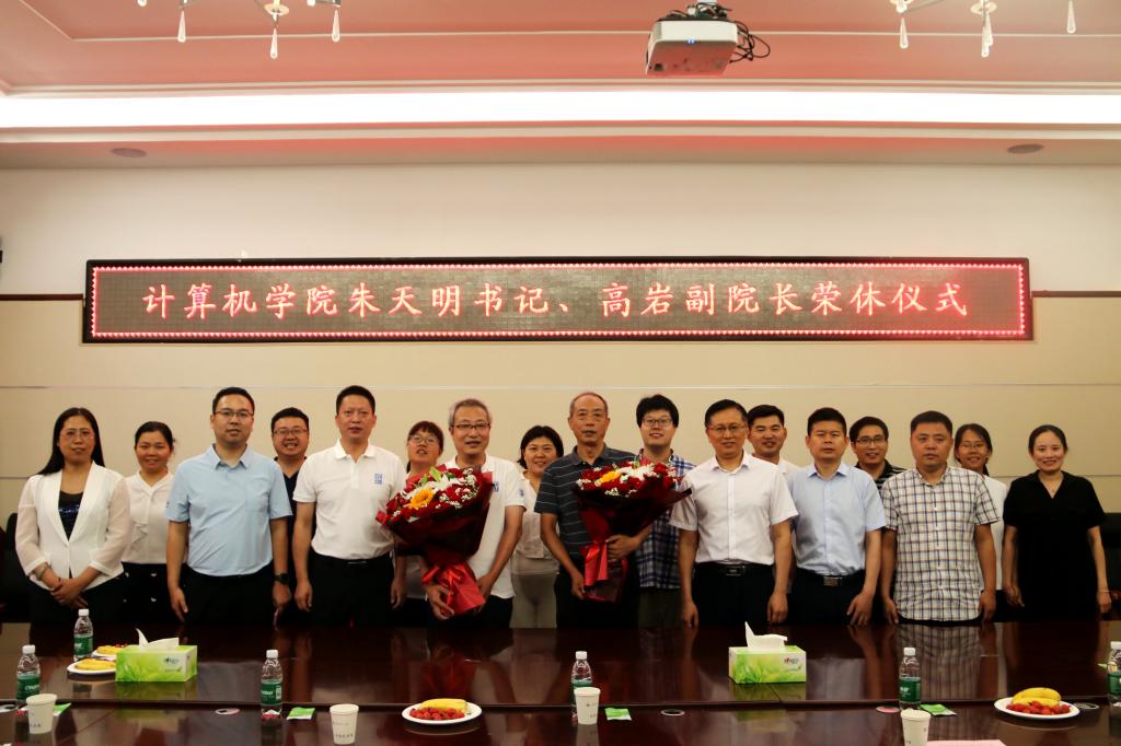 6月30 日下午,计算机学院在217会议室举行教师荣休仪式,欢送朱天明、高岩老师退休。荣休教师、该院领导班子成员、部分教工代表参加仪式。仪式由该院党委副书记、工会主席阎俊豪主持。