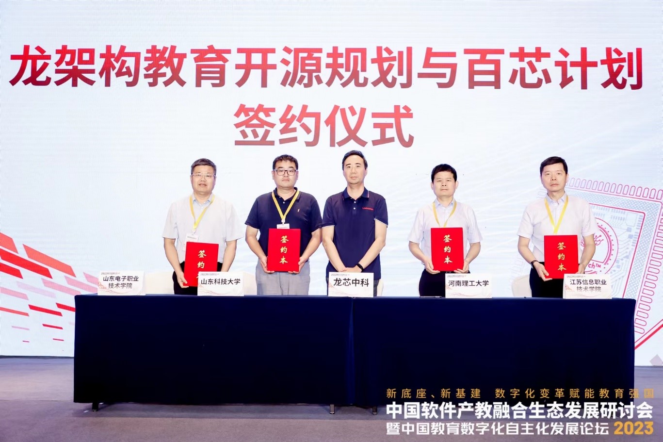 为进一步推进产教融合、科教融合,提高我校计算机类专业人才培养质量,计算机学院近期参加了由工业和信息化部教育与考试中心等单位指导,龙芯中科技术股份有限公司承办的“2023中国软件产教融合生态发展研讨会暨中国教育数字化自主化发展论坛”,并签约龙架构教育开源规划与百芯计划。