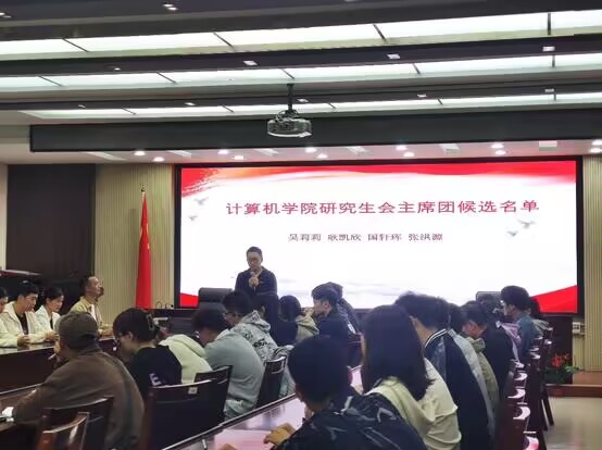 为进一步充实研究生干部队伍,为新学年工作打好基础,10月18日至19日,计算机学院研究生会在217、201会议室分别举行会议,圆满完成2023-2024学年主要学生干部换届工作。学院研究生会及研究生代表参加换届工作,计算机学院党委副书记阎俊豪和研究生辅导员余锋到会指导。