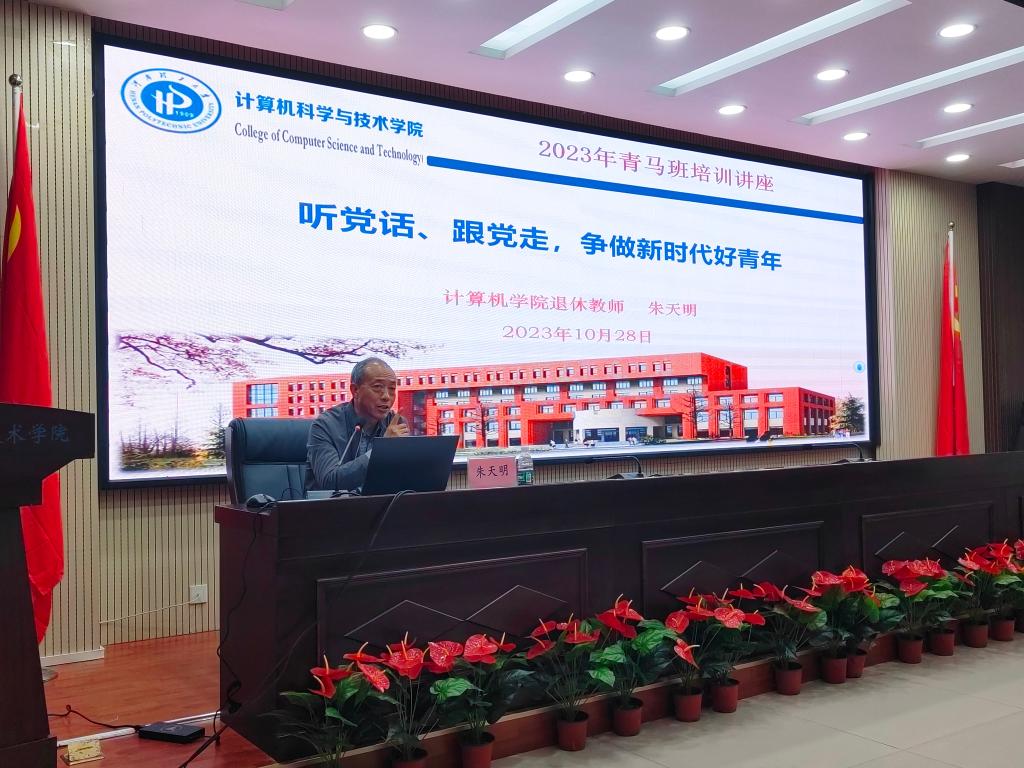 开班仪式进一步加深了学员对青马工程的了解,坚定了学员的理想信念,激励了学员的学习热情,对后续青马工程工作开展和学员健康成长打下了坚实基础。仪式结束后,计算机学院关工委常务副主任朱天明以《听党话、跟党走,争做新时代好青年》为题,为第十三期学员做了开班第一讲。
