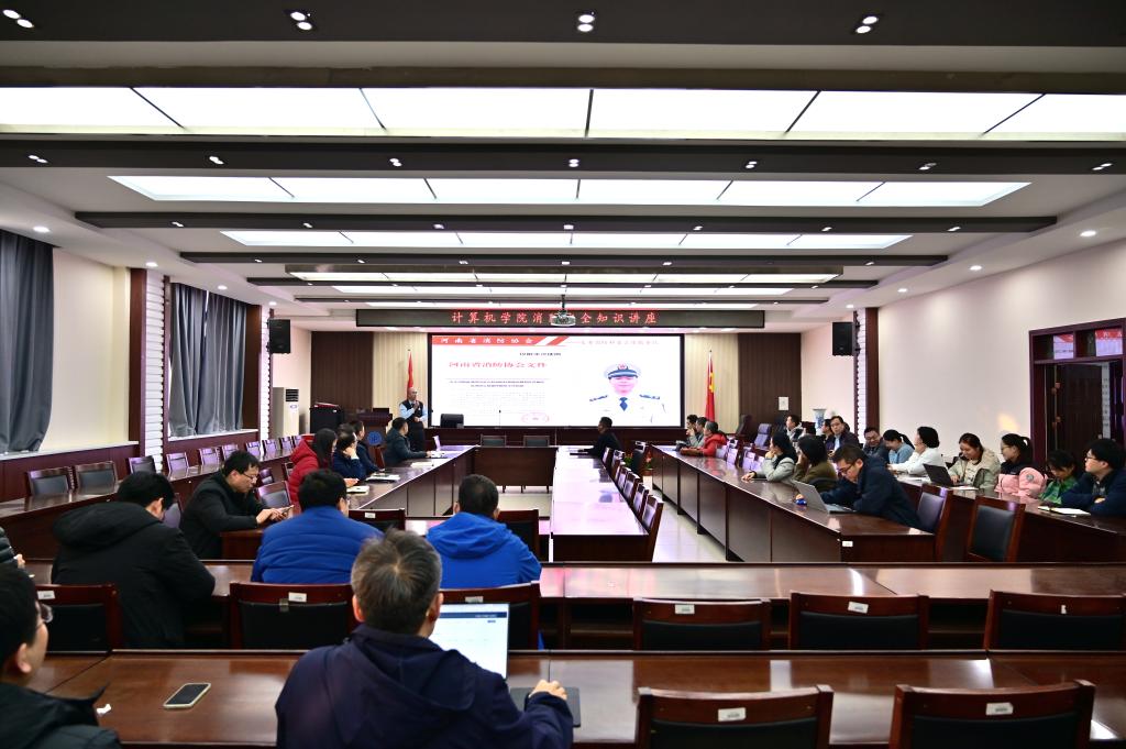 为进一步提高大家的消防安全意识和自防自救能力,11月21日下午,计算机学院在院201会议室举办以“预防为主,生命至上”为主题的消防安全知识培训讲座。讲座邀请河南省消防协会消防宣传专职教员冯宗力主讲,该院党委书记许辉主持,全体教职工参加此次培训。