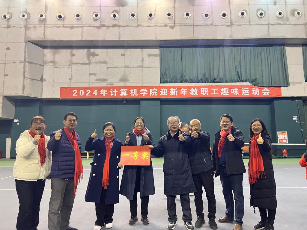 为喜迎2024新年,进一步增强学院向心力凝聚力,增进教职工相互交流和了解,12月26日下午,计算机学院在体育馆举办2024年迎新年教职工趣味运动会,全体教职工在学院领导带领下分队比拼角逐,欢声笑语其乐融融。