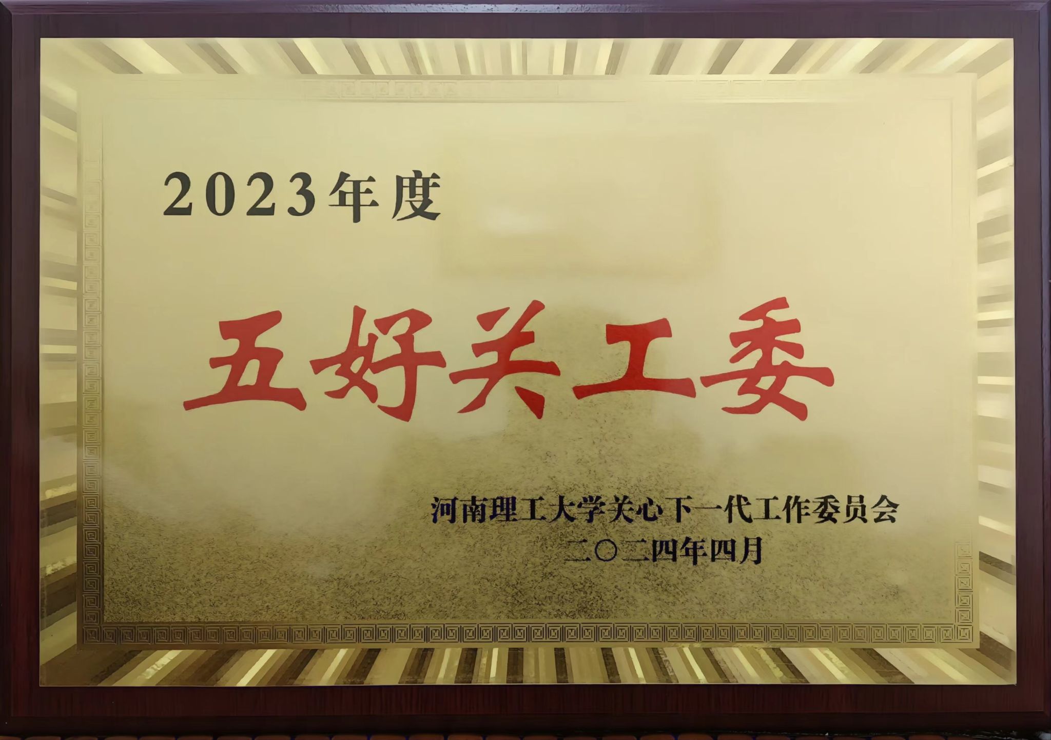 近日,计算机学院关工委在河南理工大学关工委开展的“创建五好关工委”活动评选中,获得2023年度校级“五好”关工委光荣称号。