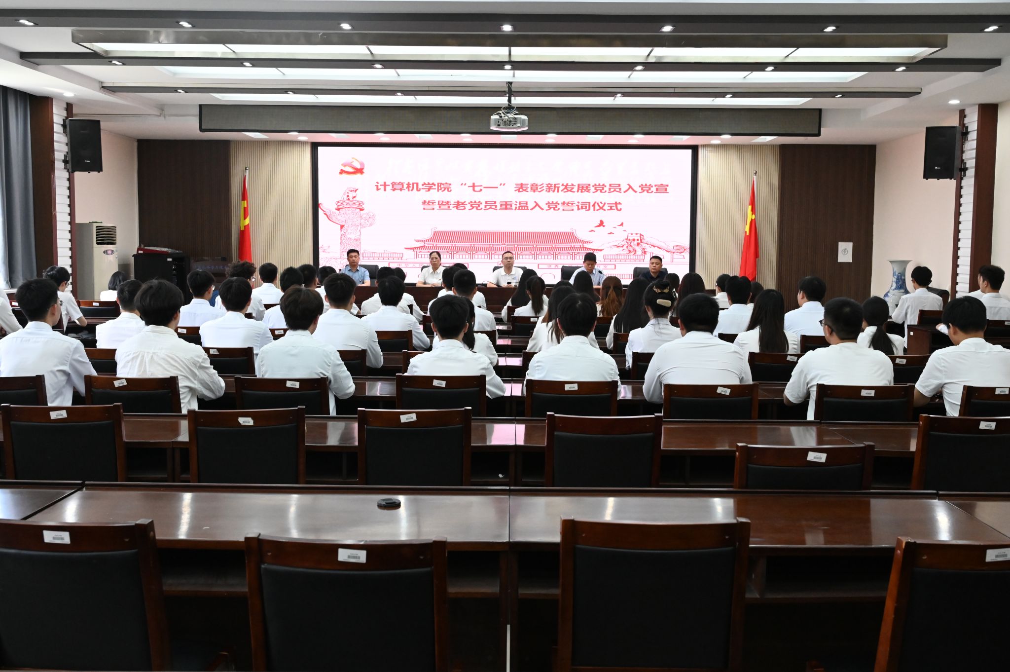 在七一党的生日来临之际,为继承和发扬党的光荣传统,6月28日上午,计算机学院在201会议室开展“七一”新发展党员入党宣誓暨老党员重温入党誓词活动。活动由候三中主持,学院党委委员、学生党支部书记和新发展党员70余人参加了宣誓活动。