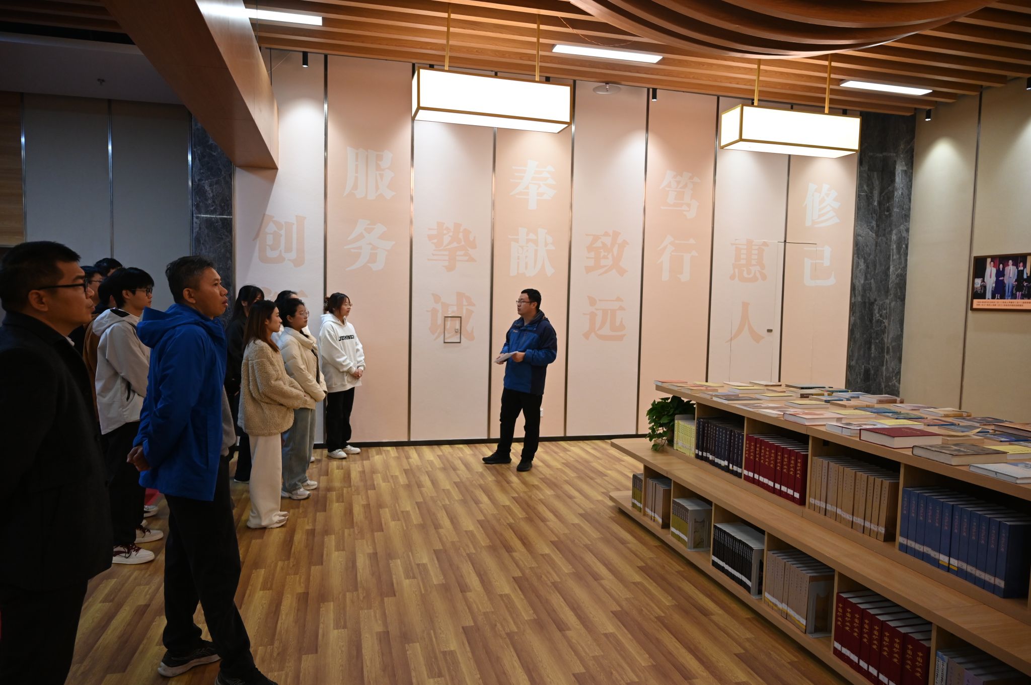“朱训书屋”藏书共计千余册,主要包括朱训先生人生奋斗历程回忆录、矿产资源国情的研究与分析、矿业和矿产资源双向发展战略的论述、找矿哲学等诸多领域。在参观中,师生党员深切感受到“以献身地质事业为荣、以艰苦奋斗为荣、以找矿立功为荣”的精神和对学校建设发展的关心和支持。师生党员纷纷表示,要汲取榜样先进力量,胸怀祖国、脚踏实地,立足本职工作,勇于担当作为。