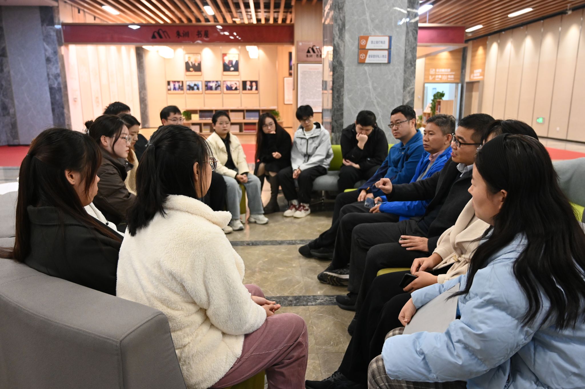 参观结束后,师生党员面对面促膝长谈,学生党员对自己生活学习以及人生规划等方面遇到的问题向老师提问,教师党员针对同学们提出的问题针对性的作出回答,指导学生要做好个人目标规划,以学科竞赛为着力点提升专业水平和动手能力,师生之间还一起探讨关于专业建设和人才培养方面的相关问题和实施建议。最后,党员之间分享最近的读书心得,教师党员推荐了《习近平与大学生朋友们》、《苦难辉煌》等书籍,教导学生要珍惜校园学习机会,合理利用学习资源,拓宽视野,提升综合能力。