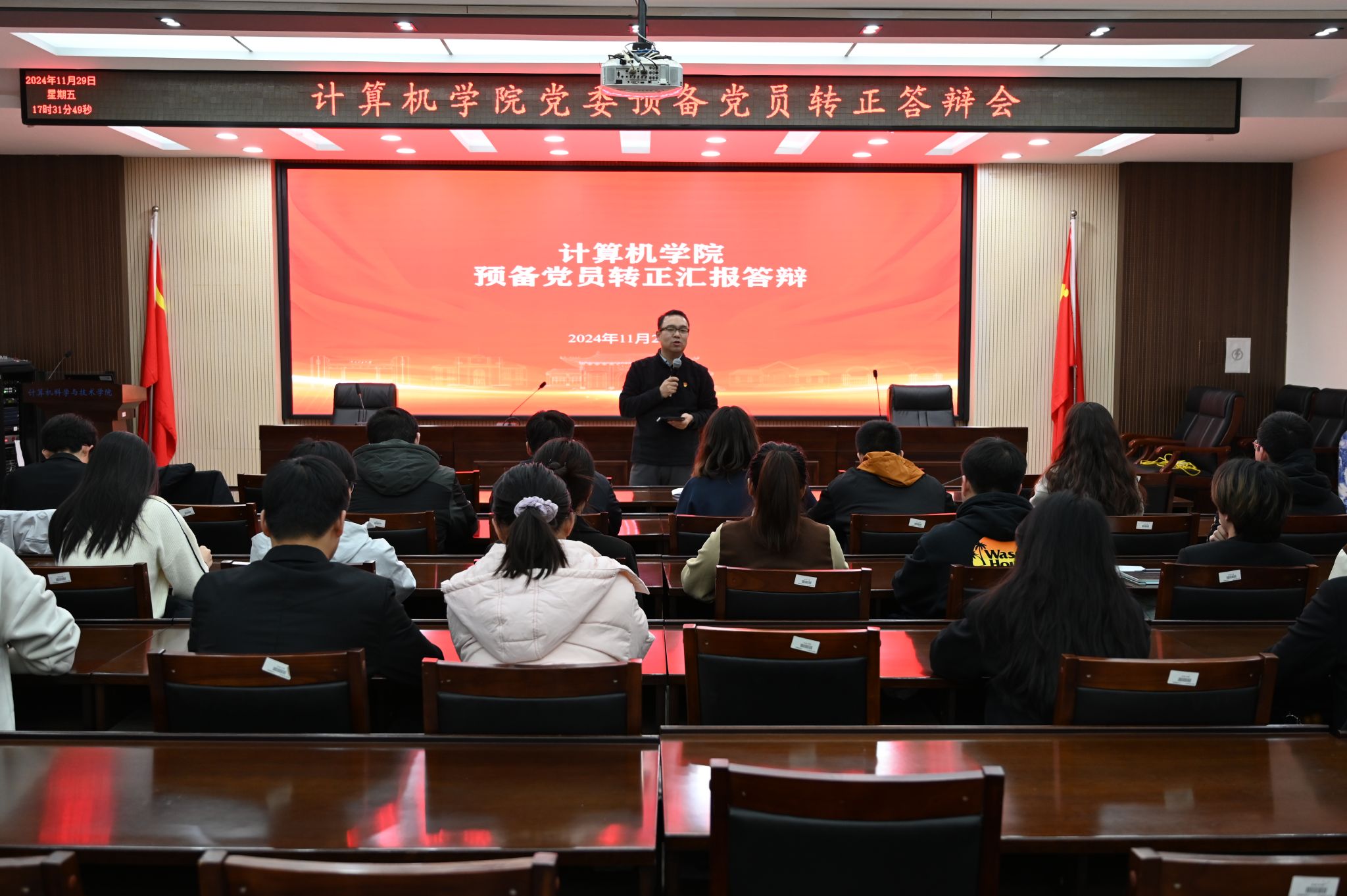 为进一步加强党员队伍建设,保持党员队伍先进性,计算机学院党委于11月29日下午在学院201会议室开展了2024下半年预备党员转正汇报答辩,学院党委委员、各支部书记以及拟转正的中共预备党员参会,答辩会由院党委副书记阎俊豪主持。