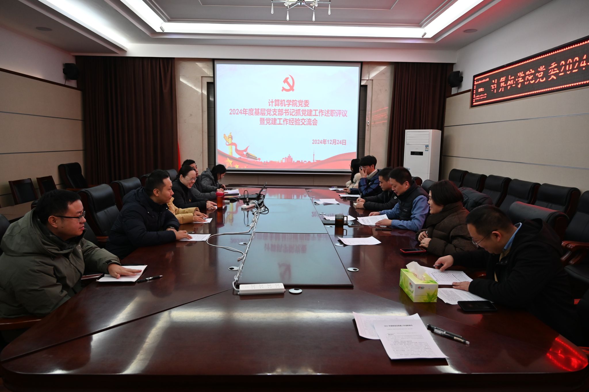 为进一步压紧压实基层党支部书记抓党建的政治责任,全面提升党建工作水平,12月24日下午,计算机学院党委在217会议室召开2024年度党支部书记抓党建工作述职评议暨党建工作经验交流会,会议由党委书记许辉主持。