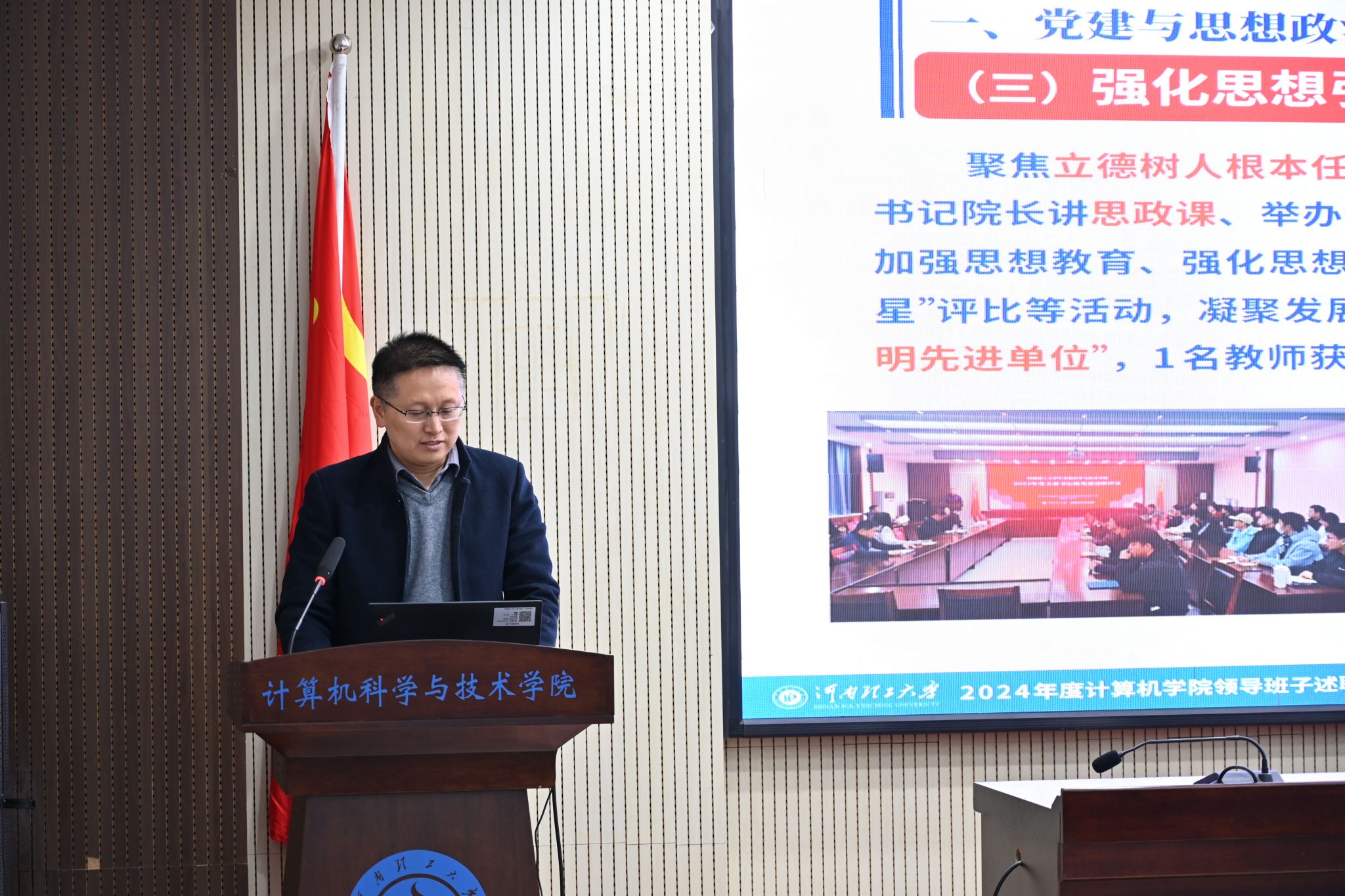 12月26日,计算机学院在学院201会议室召开2024年度领导班子述职述廉述学大会,学院全体教职工参加会议。副校长丁亚红出席并讲话,会议由学院党委书记许辉主持。