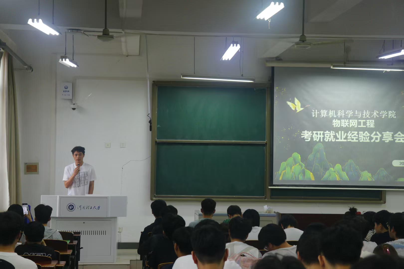 为充分发挥党支部引领作用,助力 22 级物联网工程专业学生科学规划考研目标,5 月 8 日下午,物联网工程专业教师党支部与本科生党支部联合在学院 105 教室举办考研经验分享会。教师党支部书记晁浩、物联网系主任张利红为学生做动员指导,四位 21 级考研优秀学生代表分享经验,22 级物联网专业全体学生参与。