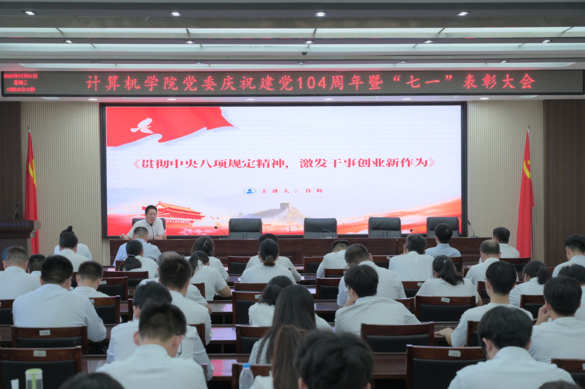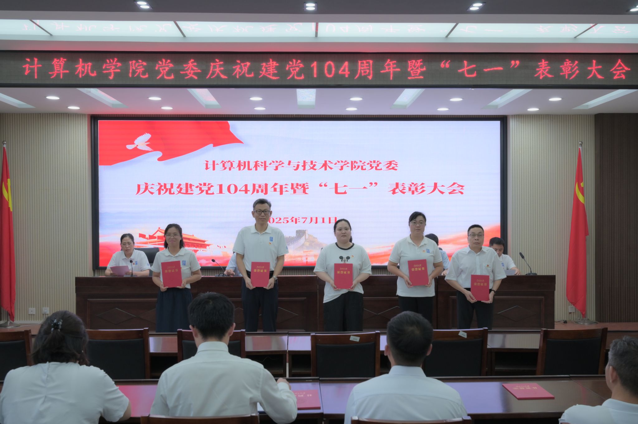 为隆重庆祝中国共产党成立104周年,充分发挥先进典型的示范引领作用,进一步凝聚全体党员奋进力量,7月1日下午,计算机学院党委于201会议室隆重举行庆祝建党104周年暨“七一”表彰大会。学院党委委员、教师党员代表、新入党的学生党员参加会议,会议由副院长于金霞主持。