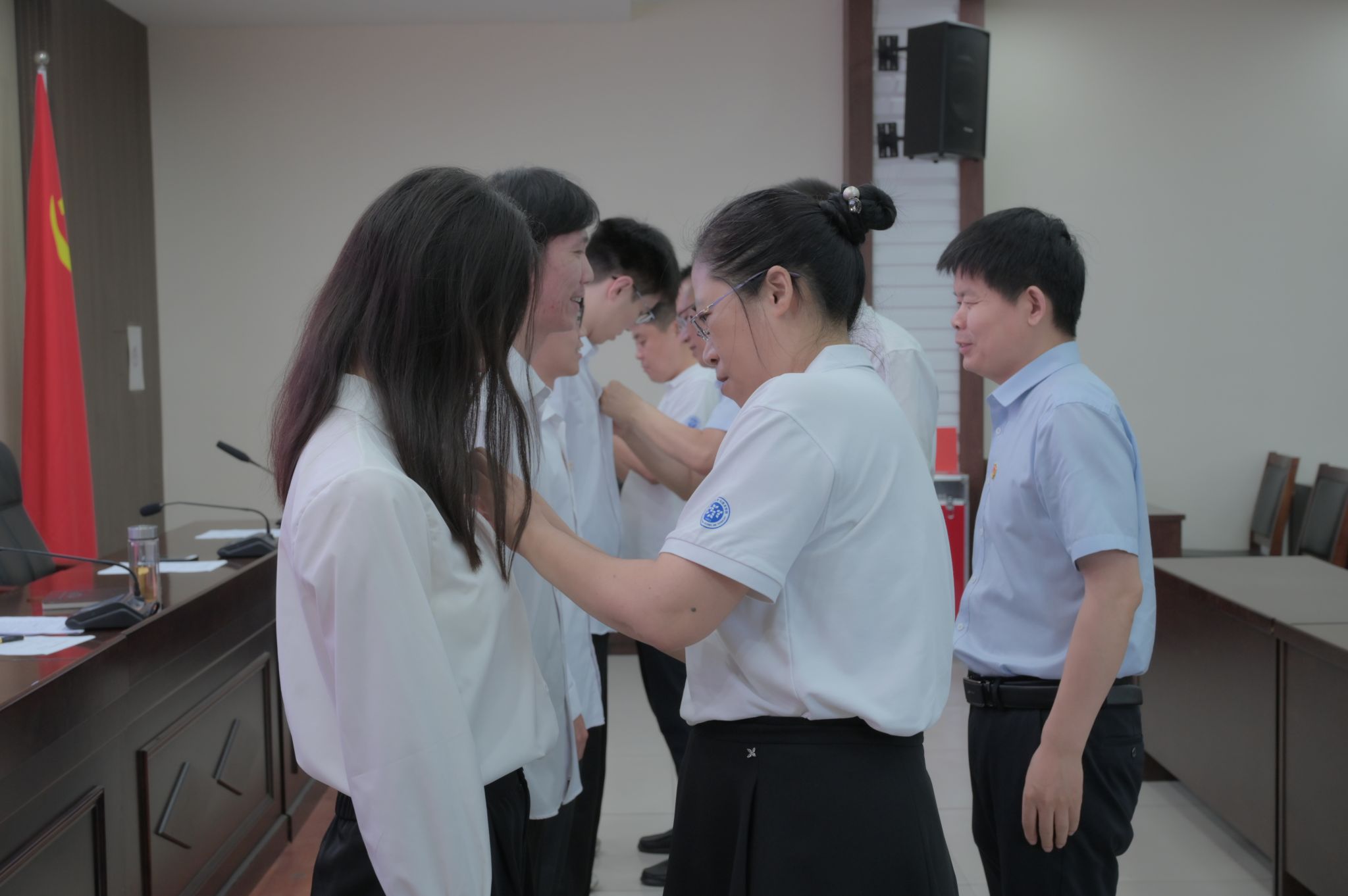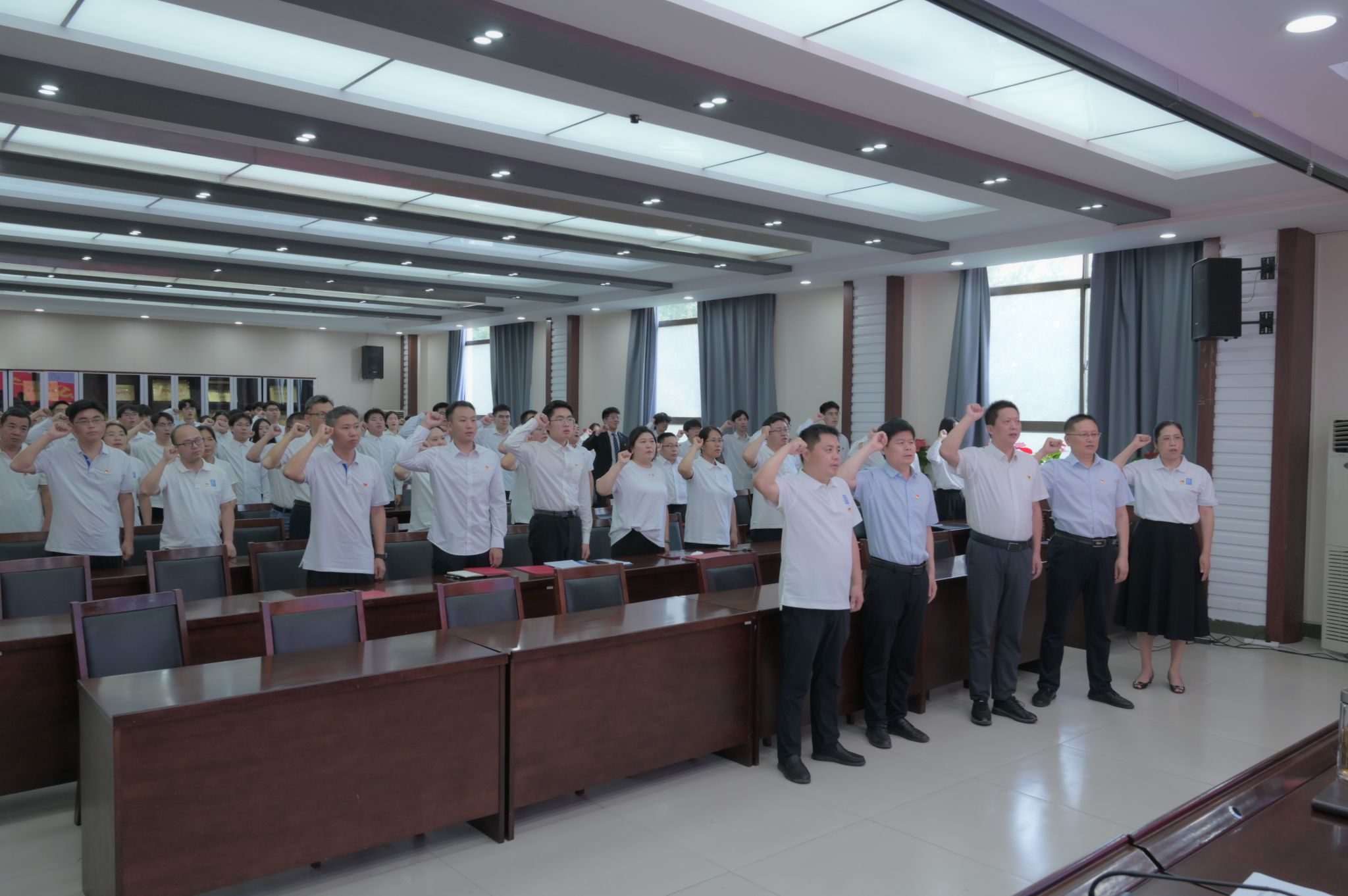 伴随着庄严激昂的《国歌》旋律响起,大会正式拉开帷幕。在表彰环节,党委书记许辉为荣获2024年度学校创先争优的先进集体和个人颁发荣誉证书,肯定他们过去一年在教学、科研与党建工作中的贡献;院长孙君顶为2024年度学院“四星”表彰教师进行颁奖,并向受表彰的教师致以诚挚的祝贺,现场掌声热烈,气氛庄重而热烈。随后,学院党委委员为新发展党员代表佩戴党员徽章。面对鲜红的党旗,新老党员共同举起右拳,以铿锵有力的誓言,表达对党的无限忠诚与坚定信念。