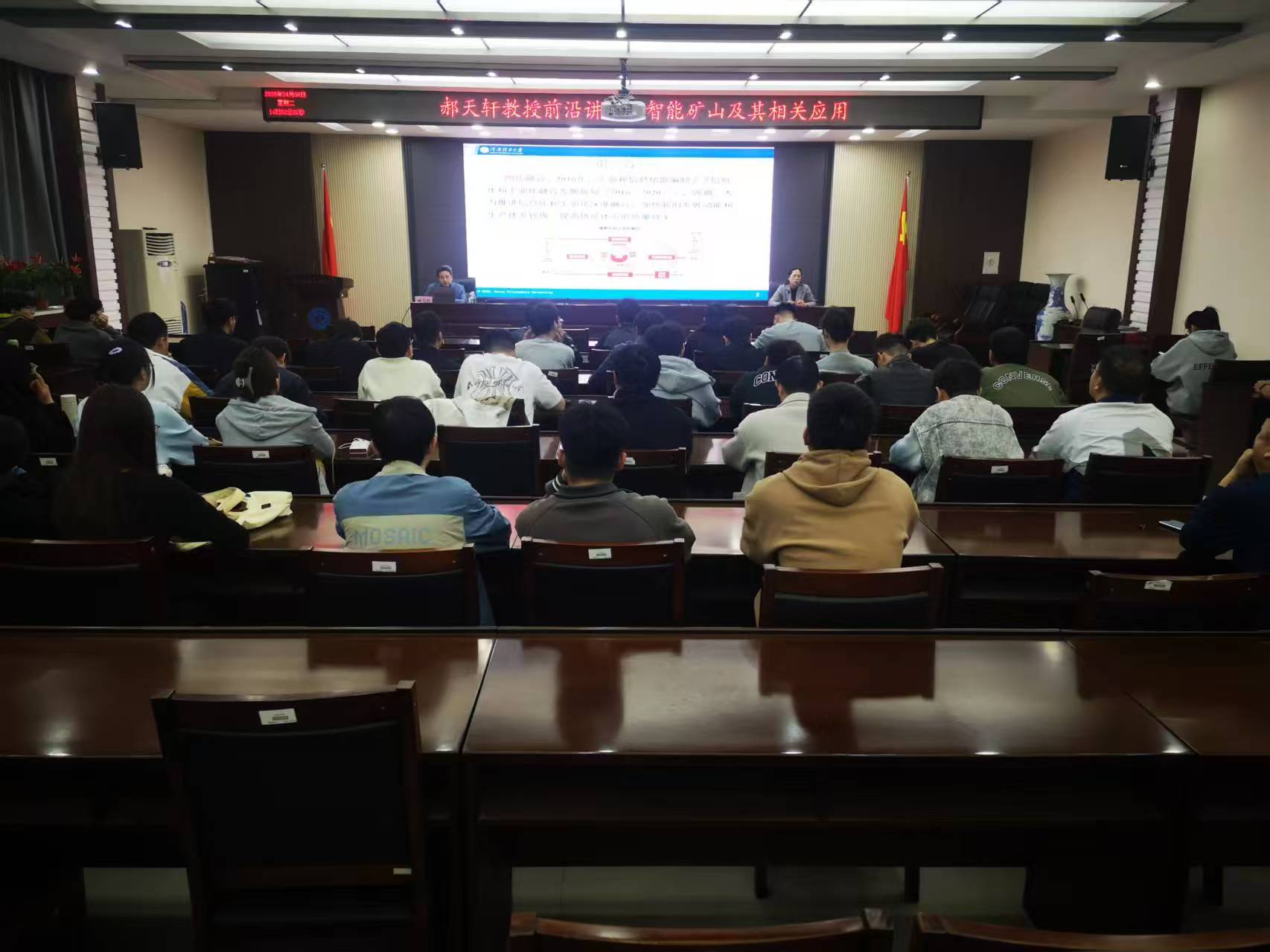 4月8日下午,我院邀请安全学院教授郝天轩在201会议室作题为“智能矿山建设及相关应用”学术前沿讲座。讲座由学院副院长于金霞主持,2024级电子信息专业硕士研究生及部分教师代表近60人参加。