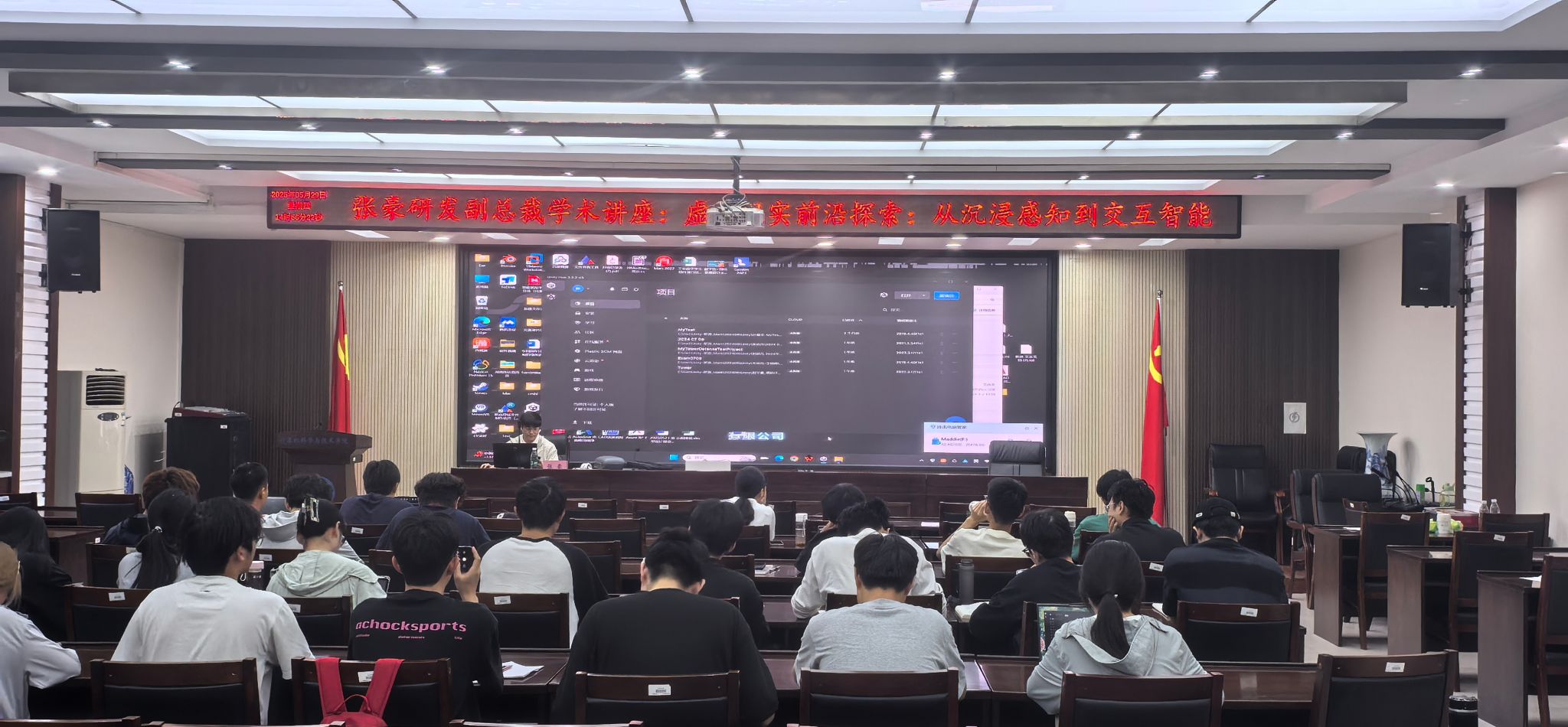 5月29日下午,计算机学院邀请河南伟达电子技术有限公司研发副总裁张豪在201会议室作题为“虚拟现实前沿探索:从沉浸感知到交互智能”学术前沿讲座。讲座由侯守明教授主持,2024级电子信息专业部分硕士研究生、计算机本科实验班及部分教师代表30多人参加。