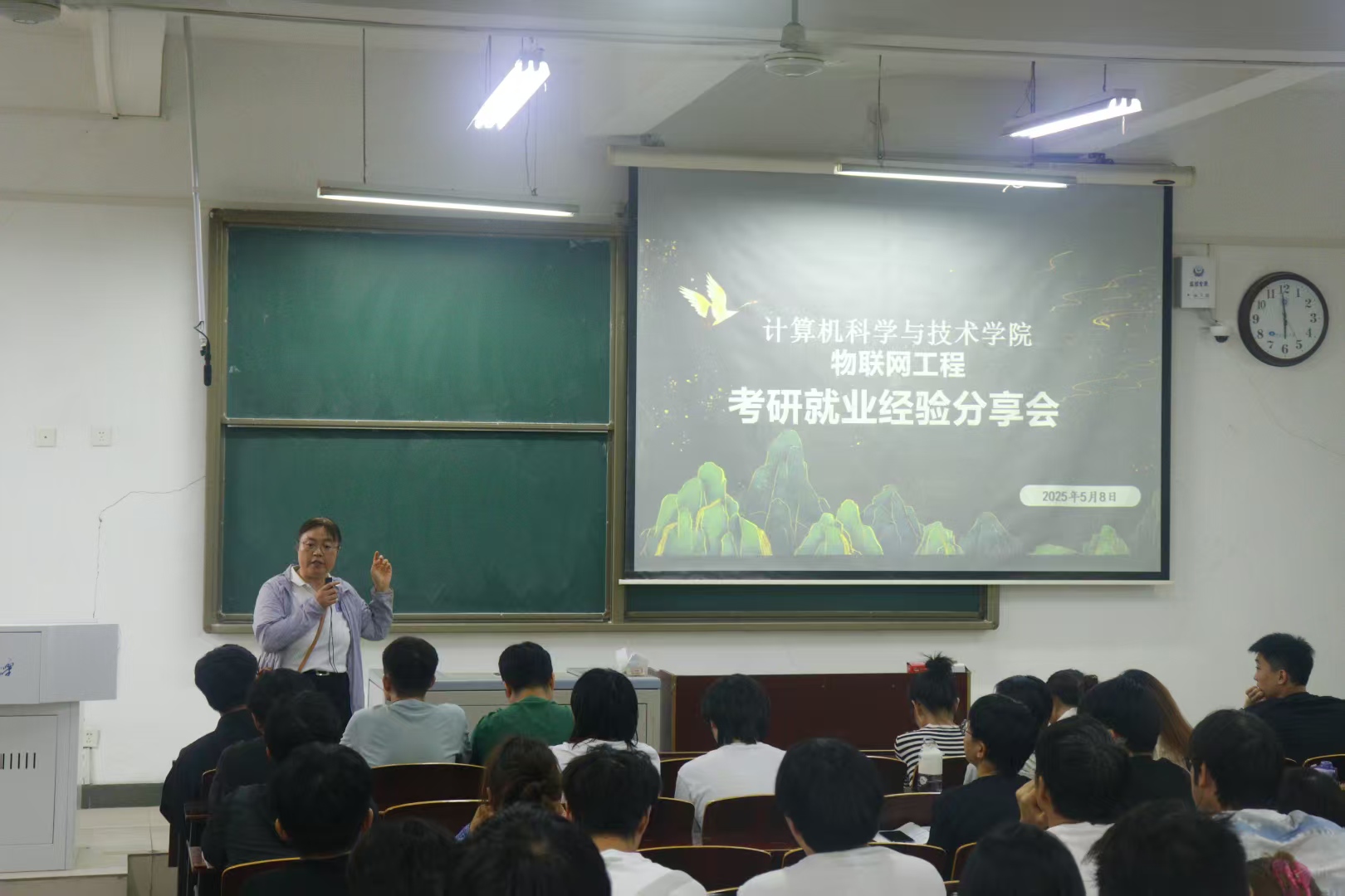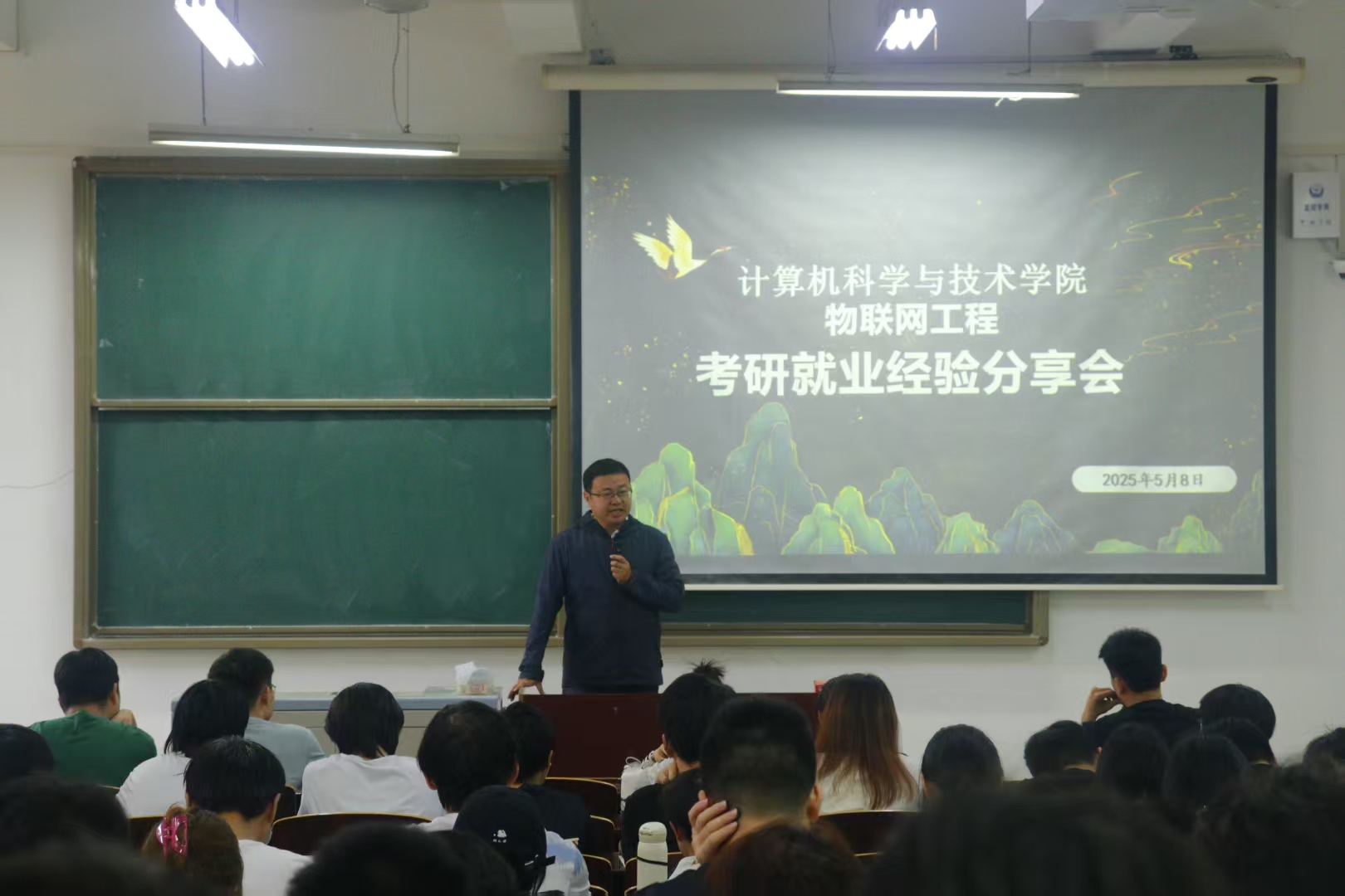 为充分发挥党支部引领作用,助力 22 级物联网工程专业学生科学规划考研目标,5 月 8 日下午,物联网工程专业教师党支部与本科生党支部联合在学院 105 教室举办考研经验分享会。教师党支部书记晁浩、物联网系主任张利红为学生做动员指导,四位 21 级考研优秀学生代表分享经验,22 级物联网专业全体学生参与。