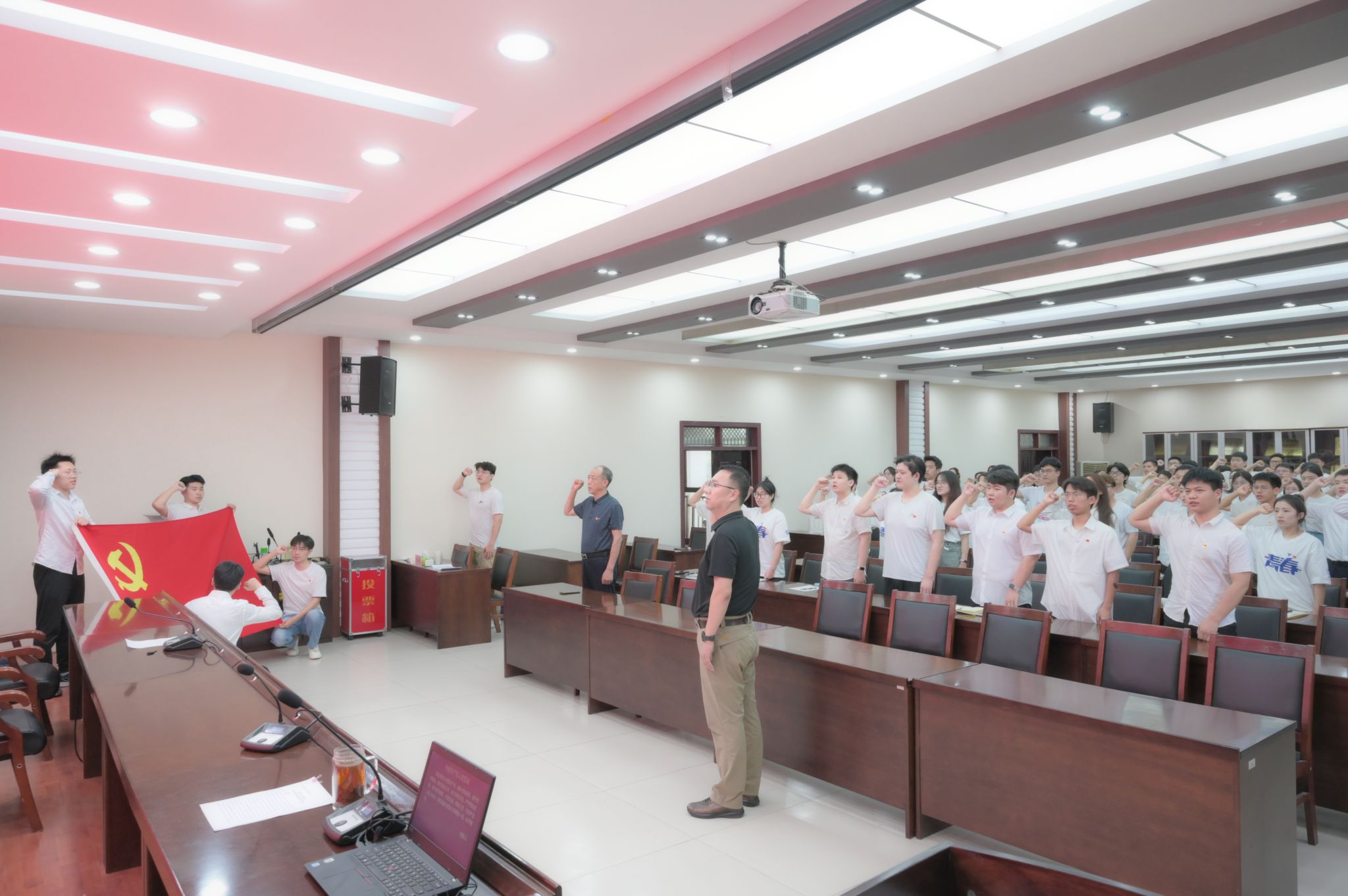 活动开始,全体人员集中观看视频《奋斗百年路 起航新征程》。随后,学院党委副书记阎俊豪带领全体党员面向党旗庄严宣誓。“我志愿加入中国共产党……” 铿锵誓言响彻会场,彰显了毕业生党员忠诚于党、终身为党奋斗的坚定决心。宣誓完毕后,阎俊豪寄语毕业生党员:“无论走向何方,都要牢记党员身份是第一身份,以高标准严格要求自己,在岗位上发挥先锋模范作用,彰显党员担当。”