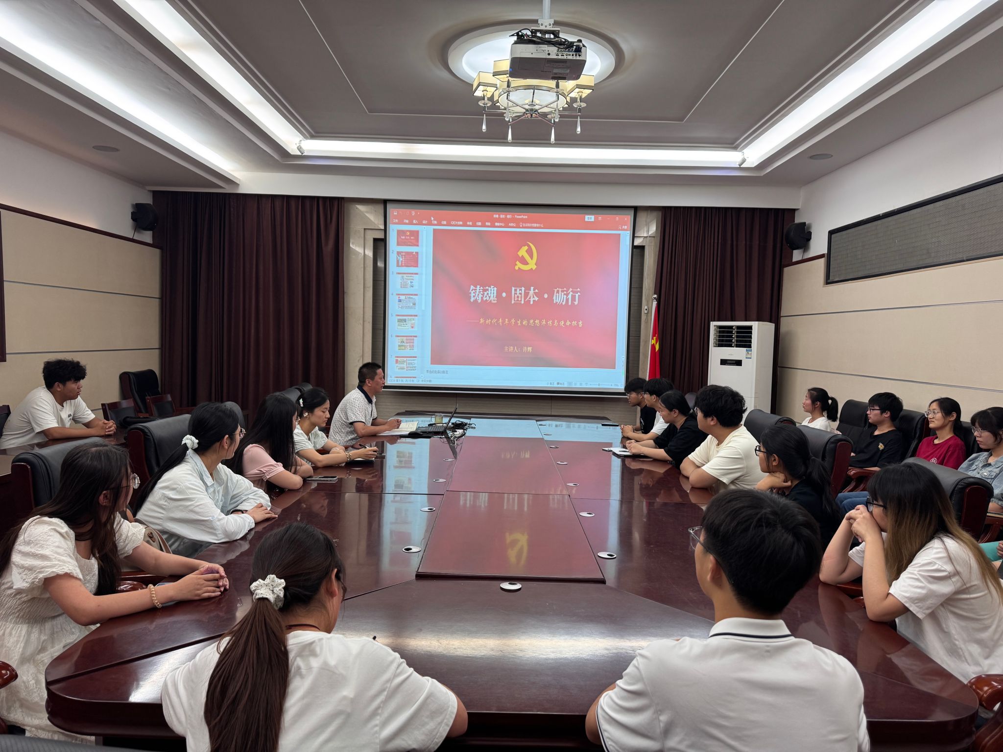 铸思想之魂明方向,砺实践之行担使命。6月18日,计算机学院党委书记许辉在217会议室为计实验2301班全体学生讲授题为“铸魂・固本・砺行——新时代青年学生的思想淬炼与使命担当”的思政课。