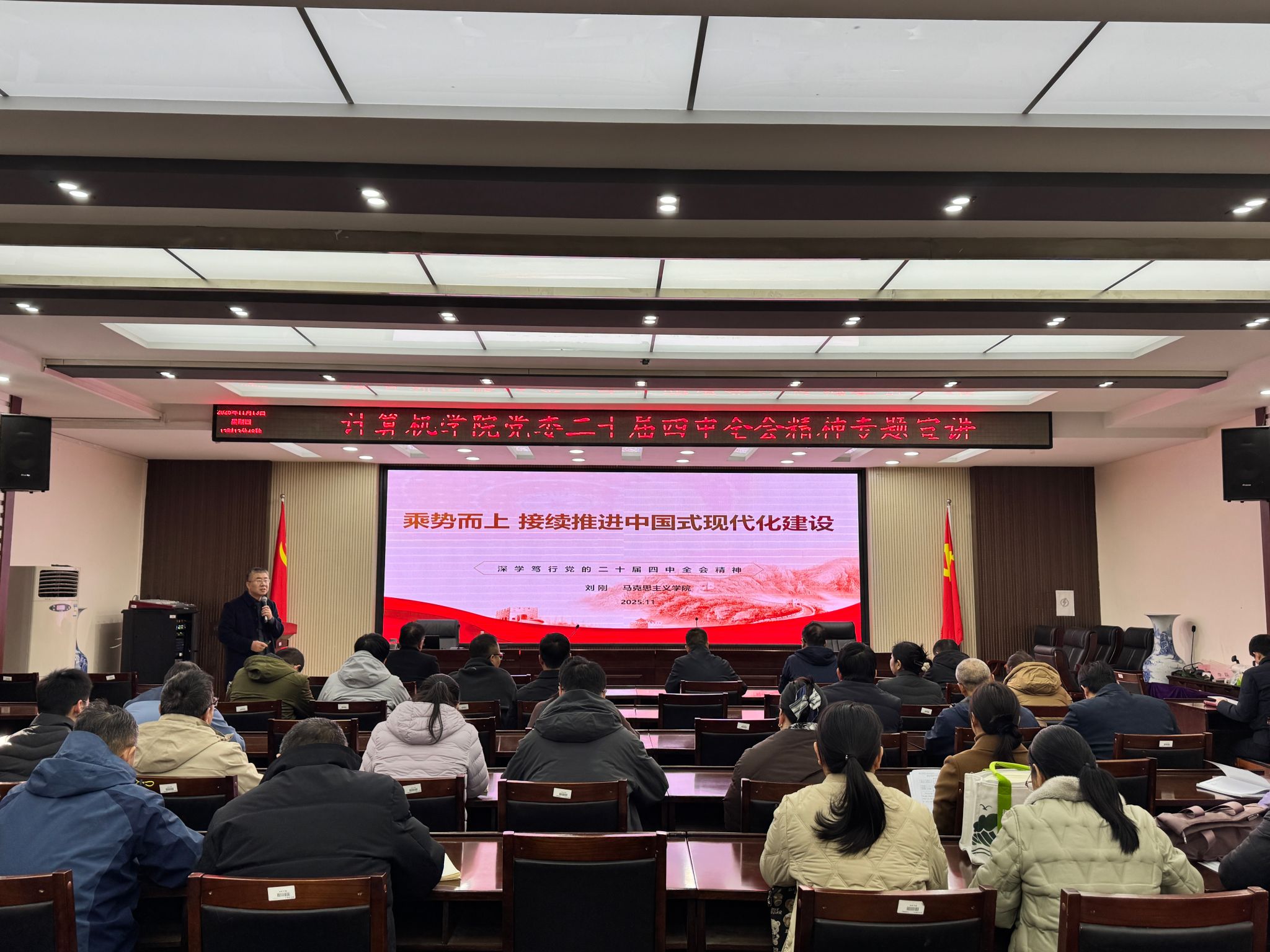 为引导全院教师深刻把握党的二十届四中全会精神核心要义,精准对接“十五五”规划战略部署,1118日下午,计算机学院特邀校宣讲团专家、马克思主义学院副教授刘刚,作题为《乘势而上,接续推进中国式现代化建设》的专题宣讲报告,学院全体教职工参会。