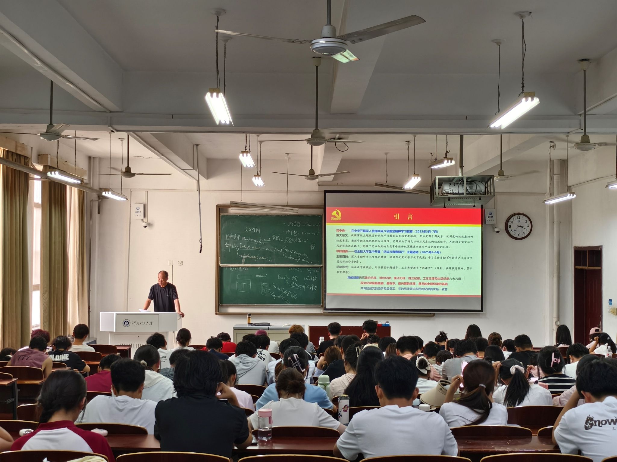 朱天明以《守纪律讲规矩 做政治上的明白人》为题,从党的政治纪律和政治规矩的概念讲起,结合《中国共产党章程》《关于新形势下党内政治生活的若干准则》等党内法规,指出政治纪律是党最关键的纪律,是党员在政治各方面的刚性约束,政治规矩既涵盖成文纪律,也包含党的优良传统和工作惯例。接着,朱天明回顾共产党通过整风、纪律建设巩固自身的历史,以苏共因纪律涣散丧失执政地位为例,强调政治纪律和政治规矩是政党的“生命线”,并引用“理想信念就是共产党人精神上的‘钙’”,警示青年学生警惕信仰迷茫等问题。最后,他结合习近平总书记“五个必须”要求,呼吁全体团员青年在思想行动上同党中央保持高度一致,将严守政治纪律和规矩融入日常,规范自身行为,维护党的团结统一,为党的事业和民族复兴贡献力量。会后,全体参与人员观看了反腐纪录片《永远在路上》。