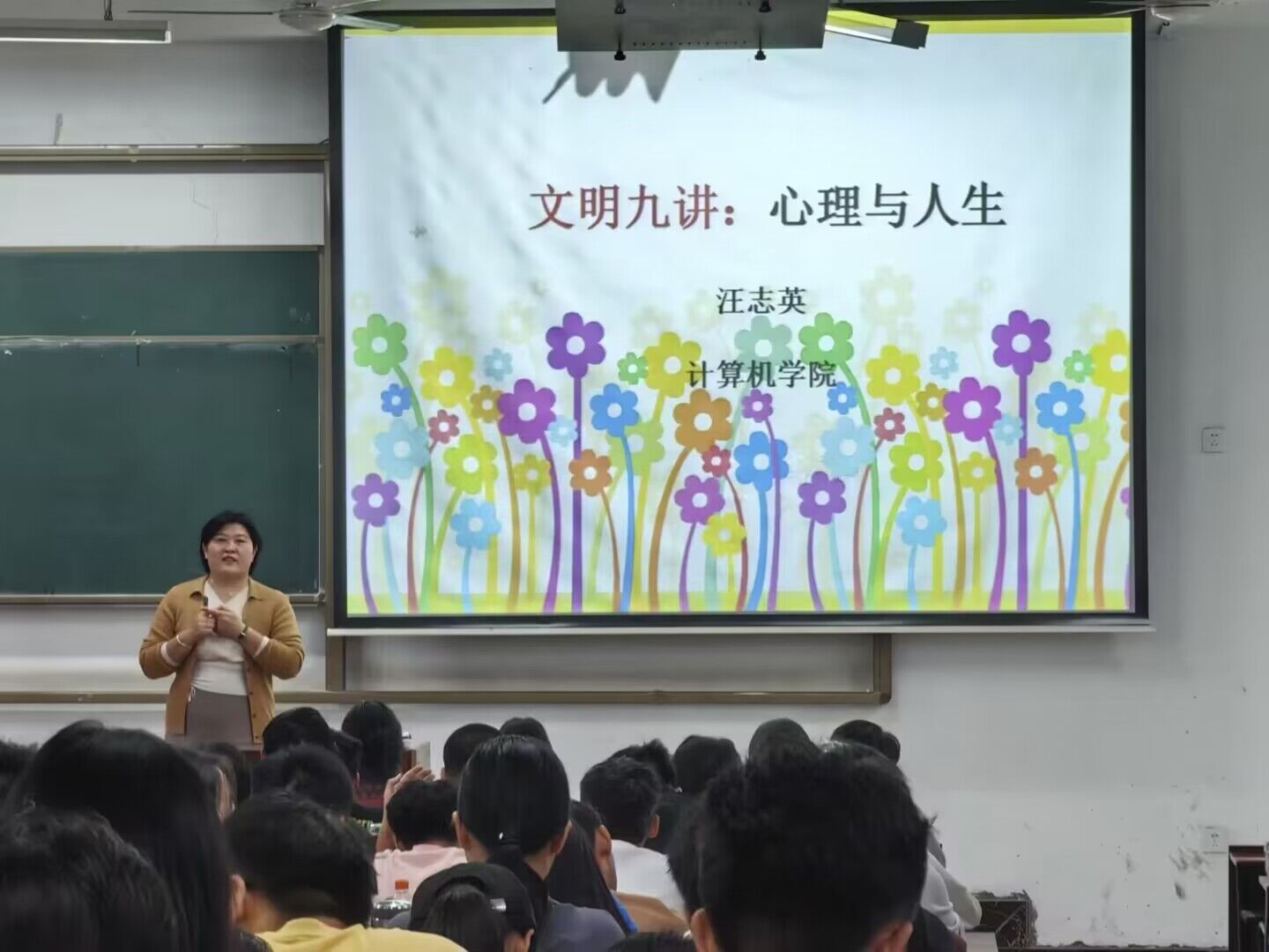 为提升学生心理健康素养,帮助新生更好适应大学生活,10月30日下午,计算机学院在院楼101举办了“文明九讲”之“心理与人生”专题讲座。学院学工办主任、国家二级心理咨询师汪志英主讲,学院2023级全体本科生参加。