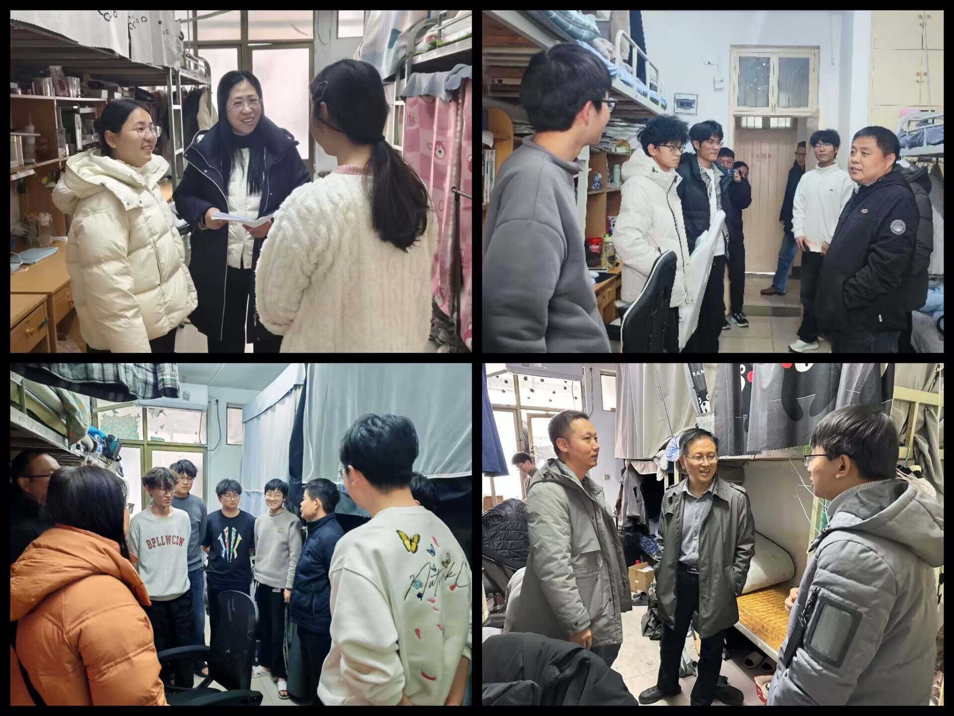 走访过程中,院领导详细了解学生的返校情况、学业情况以及考研就业等情况,耐心倾听同学们对新学期的学习计划、学业目标及生活诉求,重点关注毕业班学生的考研就业情况,以及学业困难、经济困难、心理困难的特殊群体学生,鼓励大家尽快调整作息状态,以饱满的精神面貌投入新学期学习生活,合理规划学业路径,主动提升专业素养和实践能力,不负春光、不负韶华。此次宿舍走访同步开展宿舍安全检查,学院走访小组严格按照校园安全管理要求,重点排查宿舍内违规使用大功率电器、私拉乱接电线、存放易燃易爆物品等安全隐患。同时,教育学生提高安全防范意识,注意用电安全、消防安全,警惕电信诈骗;引导学生建立常态化卫生值日制度,及时清理宿舍杂物、消除卫生死角,保持宿舍整洁有序,共同营造文明、温馨、安全、和谐的宿舍育人环境。