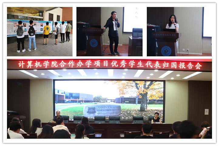 为迎接学校110周年校庆,6月18日,计算机学院特邀部分中外合作办学优秀毕业生回校,在该院201会议室举办“计算机科学与技术专业中外合作办学项目优秀学生代表归国报告会”。院党委书记朱天明出席会议,2017级、2018级计算机科学与技术中外合作办学专业学生和辅导员参加会员,会议由副院长赵珊主持。