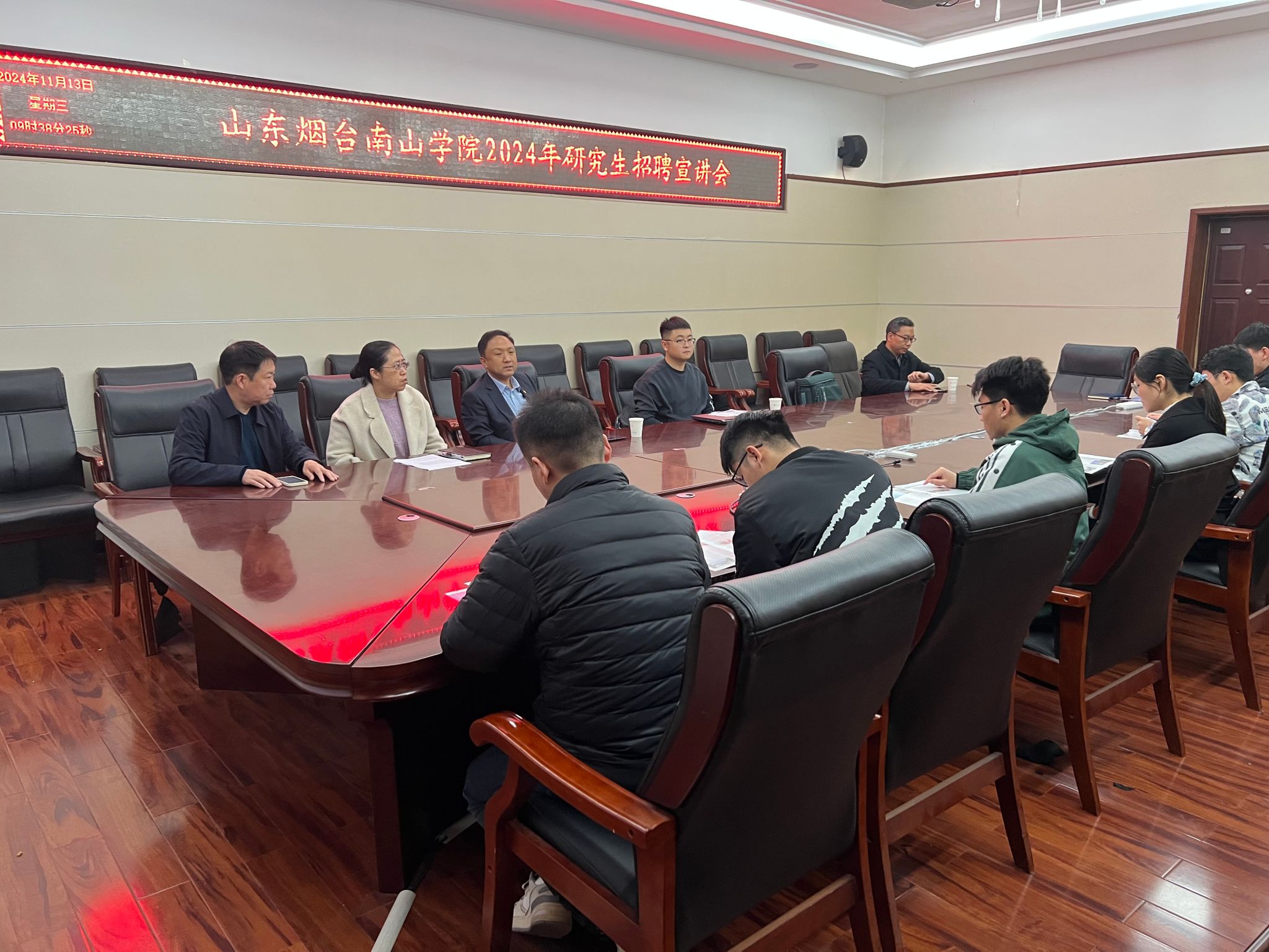 11月13日上午,烟台南山学院校长助理王纪悦一行人莅临学院,在学院217会议室开展教师招聘宣讲。学院20余名2025届毕业研究生前往现场咨询,学校研工部副部长林龙、学院副院长于金霞出席活动。