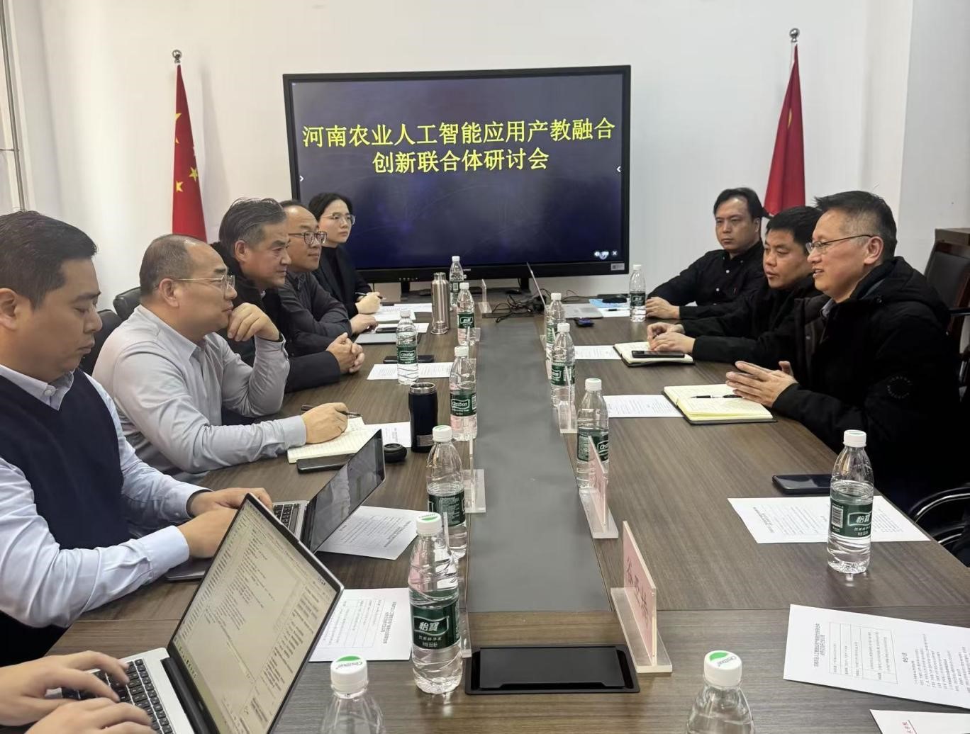 1月28日,河南农业投资集团农业大数据科技有限公司党委副书记副董事长、副总经理徐利民,中网科技文化发展(河南)有限公司副总经理赵立国一行来院调研交流。计算机学院院长孙君顶、副院长王磊及芦碧波教授等出席座谈会,双方就产学研融合等校企合作展开深度交流。徐利民高度评价我院在人工智能领域的教学科研成就,指出学院作为国内较早布局人工智能通识课程的高校,为行业培养了大批高素质人才,推动了技术进步。他详细介绍了河南农投数科的产业布局,强调双方在农业数字化、智能化转型中的战略契合点。
